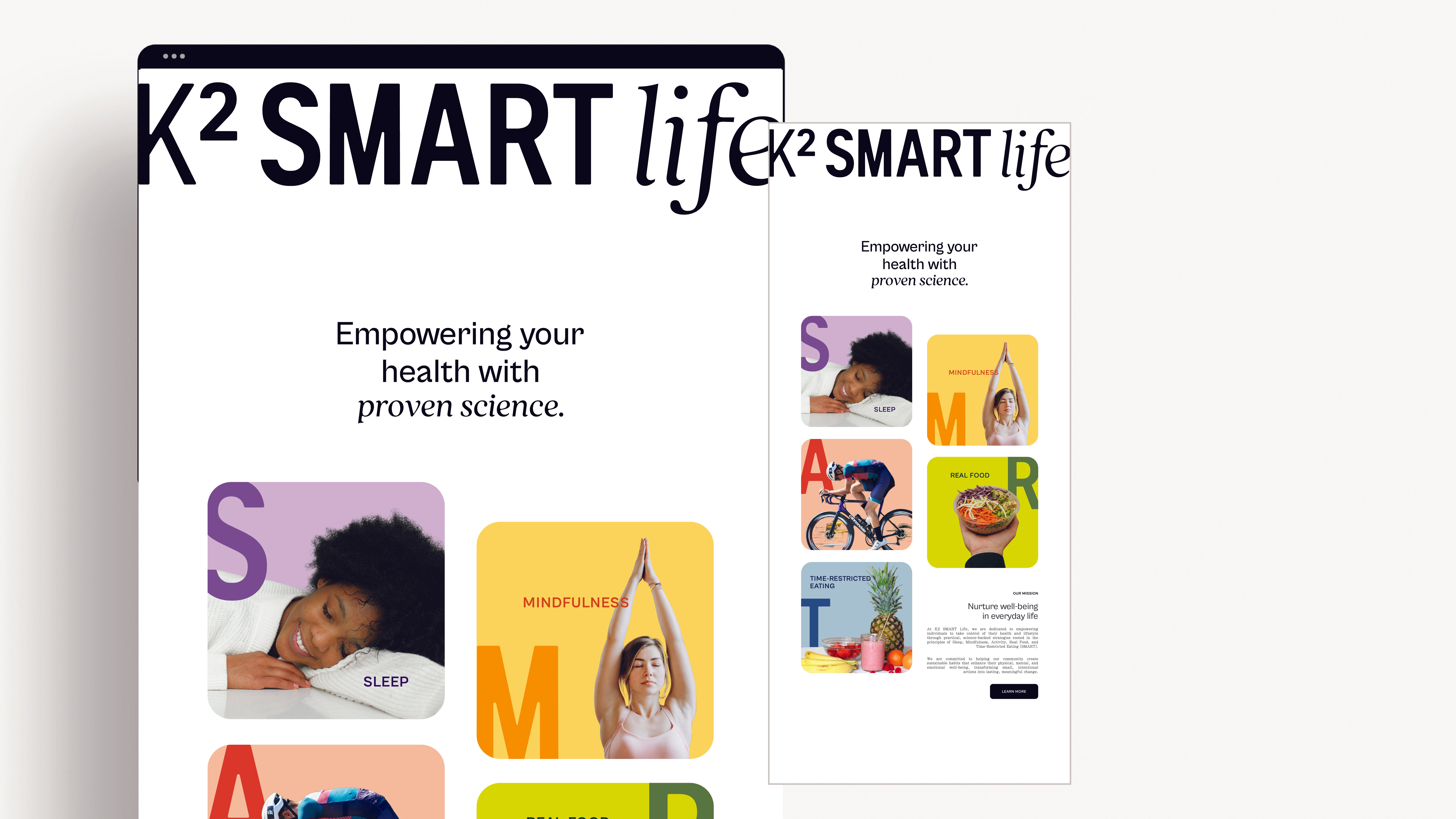 The visual identity reflects this through a bold, modular system, where each element of SMART is expressed through distinct colours, symbols, and compositions, creating a brand that feels dynamic, holistic, and easy to engage with.